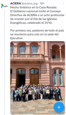 Los pastores de Aciera destacaron en sus redes sociales oficiales que el de este lunes fue “un hecho histórico en la Casa Rosada”.