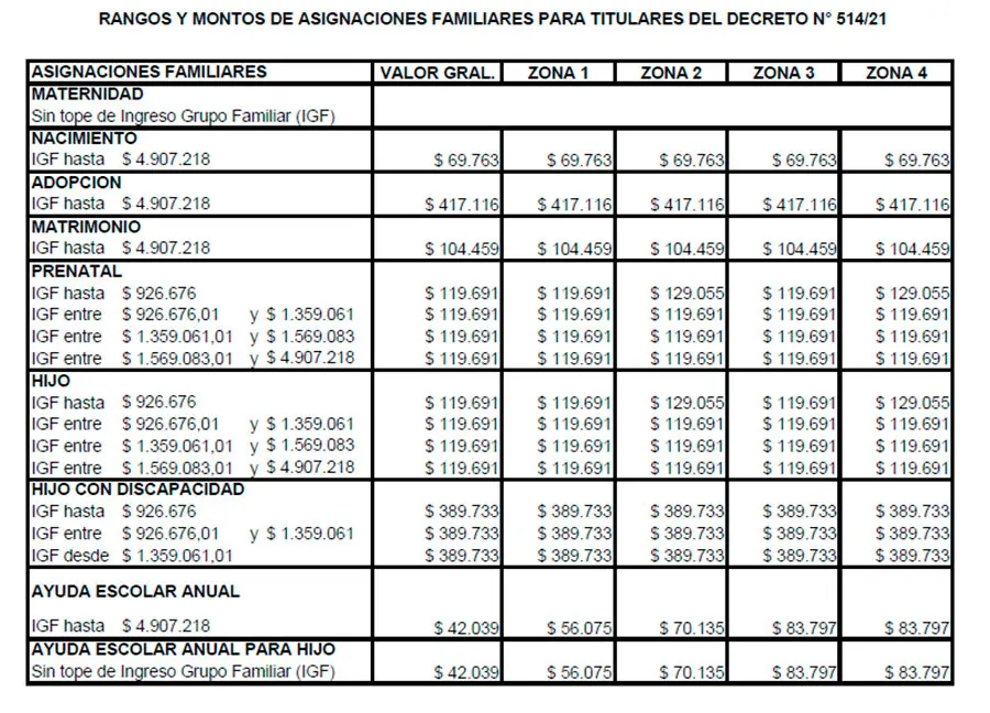 La resolución del Gobierno además establece que los grupos familiares en los cuales una persona del grupo familiar percibe ingresos superiores a $2.453.609, quedarán excluidos del cobro de estas asignaciones. Lo mismo ocurre cuando suma de sus ingresos de los integrantes de la familia superen el límite máximo de ingresos establecido que es de $4.907.218