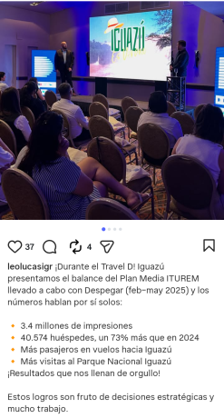 Durante el Travel D! en Iguazú, el ITUREM presentó los resultados del Plan Media realizado junto a Despegar entre febrero y mayo de 2025, una estrategia que dejó cifras récord y confirmó el impacto positivo del trabajo articulado en la promoción del destino.