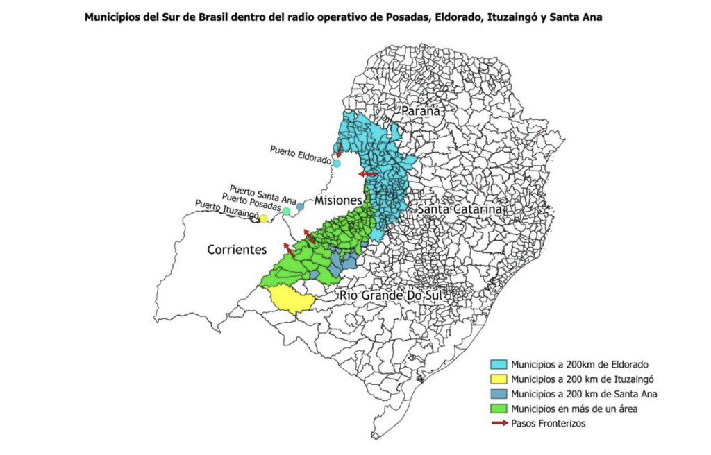 El análisis del IERAL NEA identifica más de un centenar de municipios brasileños en la franja productiva de Rio Grande do Sul, Santa Catarina y Paraná que podrían beneficiarse de la cercanía de los puertos argentinos: Posadas, Eldorado, Santa Ana e Ituzaingó.