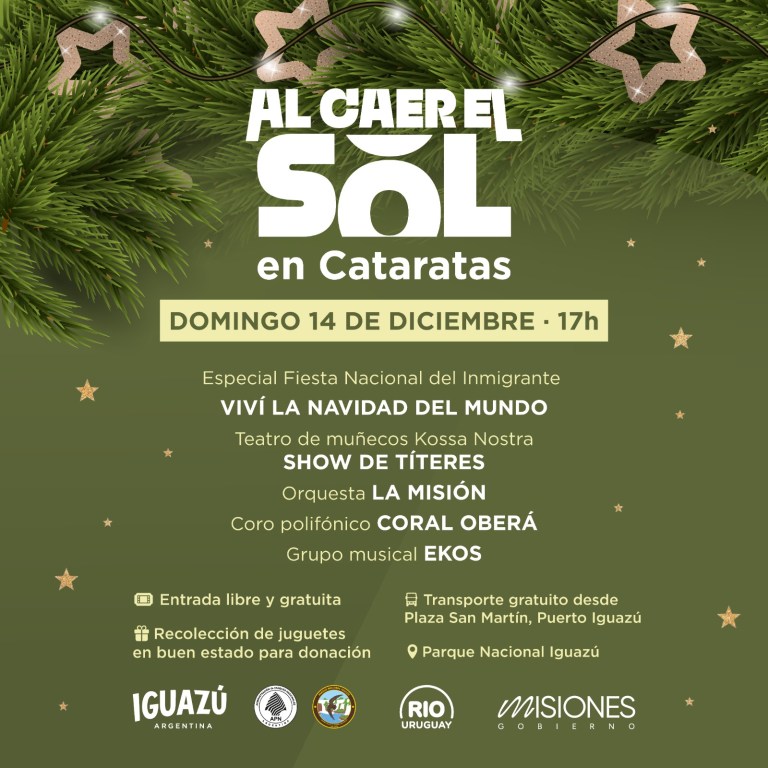 Este domingo 14 desde las 17 h, se realizará una nueva edición de “Al Caer el Sol en Cataratas” para celebrar con espíritu navideño.