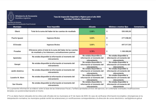 El parte añade que el “Mapa Tributario Municipal permite identificar aspectos relevantes como las bases imponibles y alícuotas aplicables a tasas seleccionadas, así como realizar comparaciones entre jurisdicciones, con el objetivo de promover la transparencia fiscal y facilitar el análisis de los sistemas tributarios municipales”, según citó la agencia Noticias Argentinas.