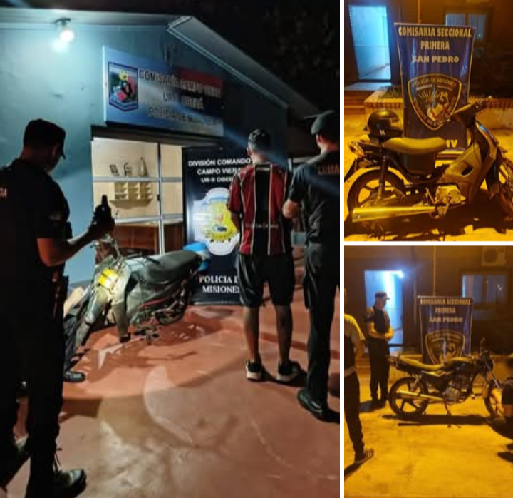 La Policía de Misiones recuperó dos motocicletas denunciadas como robadas en la ciudad de San Pedro y, en un procedimiento realizado en Campo Viera, detuvo a un joven por maniobras peligrosas y ruidos molestos en la vía pública.