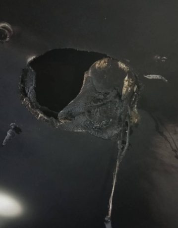 Al arribar al lugar, se constató que el foco ígneo se habría originado aparentemente por un cortocircuito en un extractor de aire del baño del sector recepción y hall del establecimiento. El mismo fue rápidamente controlado y extinguido mediante el uso de un extintor por personal de mantenimiento del hotel, antes del arribo de la dotación.