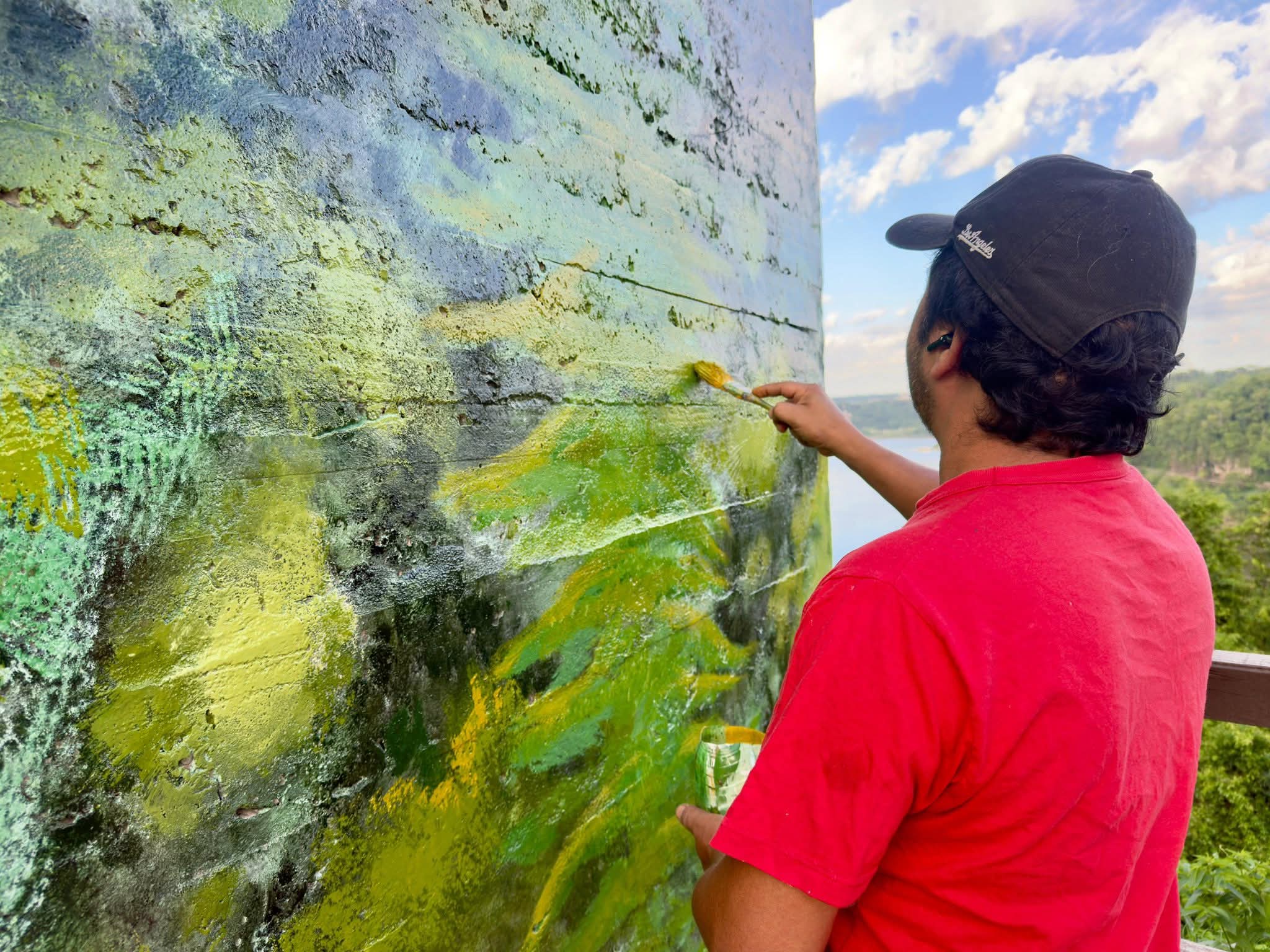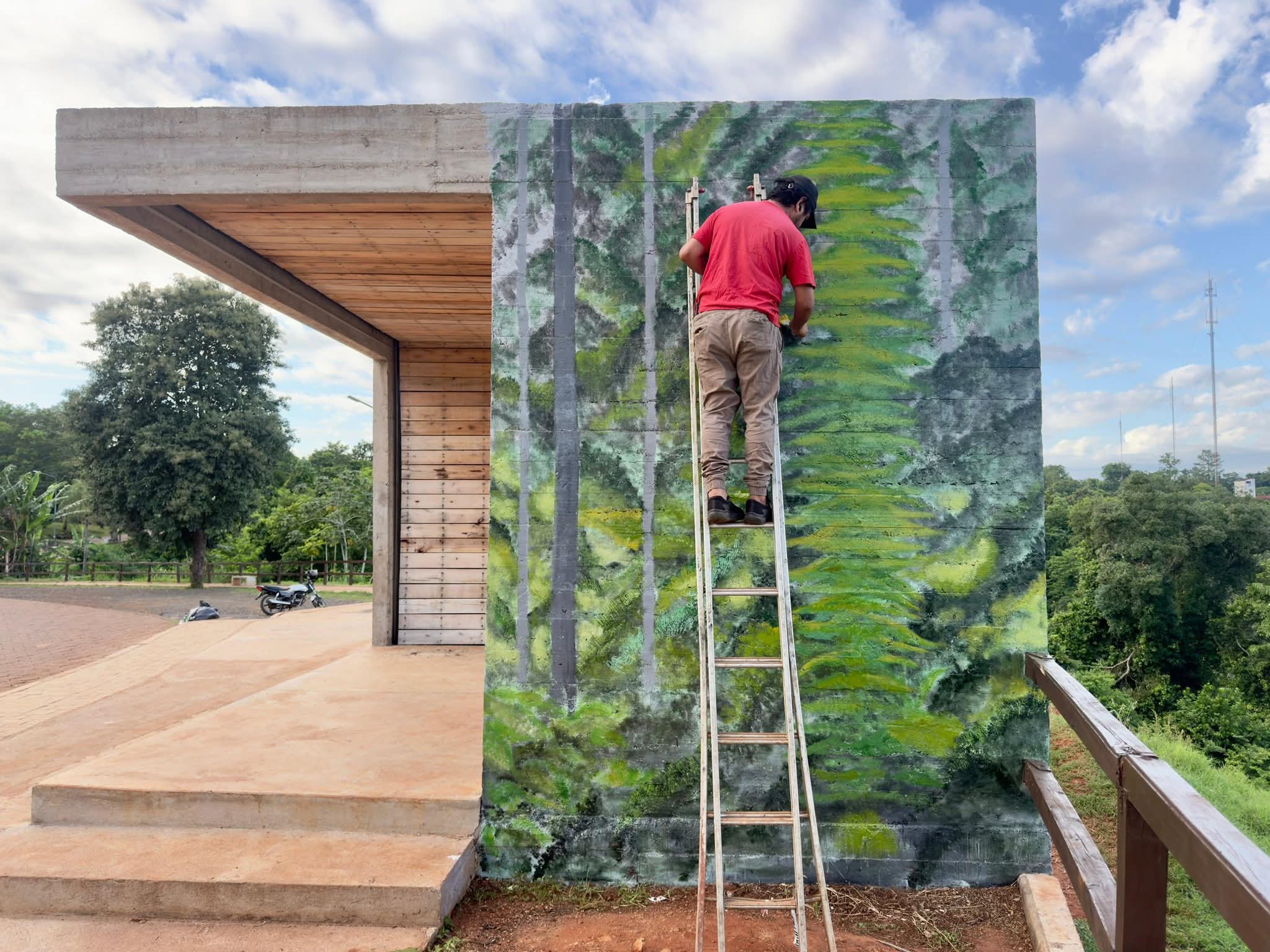 En el Mirador de la Costanera, Mario Gaviro Ocampo trabaja en una intervención artística que revaloriza uno de los espacios públicos más representativos de Iguazú.