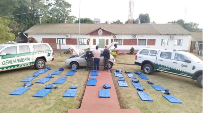 Se procedió a registrar la documentación del hombre, quien se trataría de un agricultor procedente de la localidad misionera de San Pedro. Luego, en presencia de testigos, los gendarmes inspeccionaron el interior del vehículo y descubrieron que estaba cargado con 20 bultos, los cuales acondicionaba 300 ladrillos que emanaba un fuerte olor a marihuana.