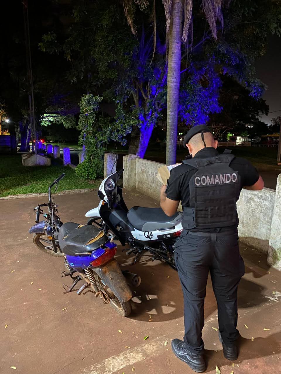 Por su parte otra patrulla de la misma División interceptó a dos masculinos a bordo de Motocicletas de 110 c.c cuando realizaban un control vehicular en la madrugada de hoy en el barrio Belén se observa que los rodados carecían de medidas de seguridad, además sus conductores no lograron justificar su propiedad procediéndose al labrado de las actas de infracción.