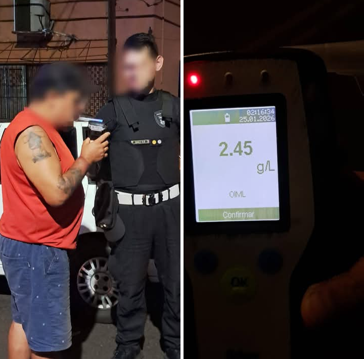 Al identificar al conductor, Orlando Omar G., de 52 años, los uniformados constataron claros signos de ebriedad. Personal de la División Seguridad Vial le practicó el test de alcoholemia, el cual arrojó un resultado positivo de 2,45 gramos de alcohol por litro de sangre.