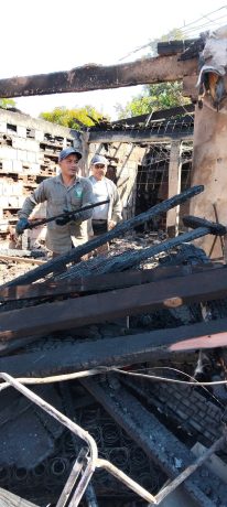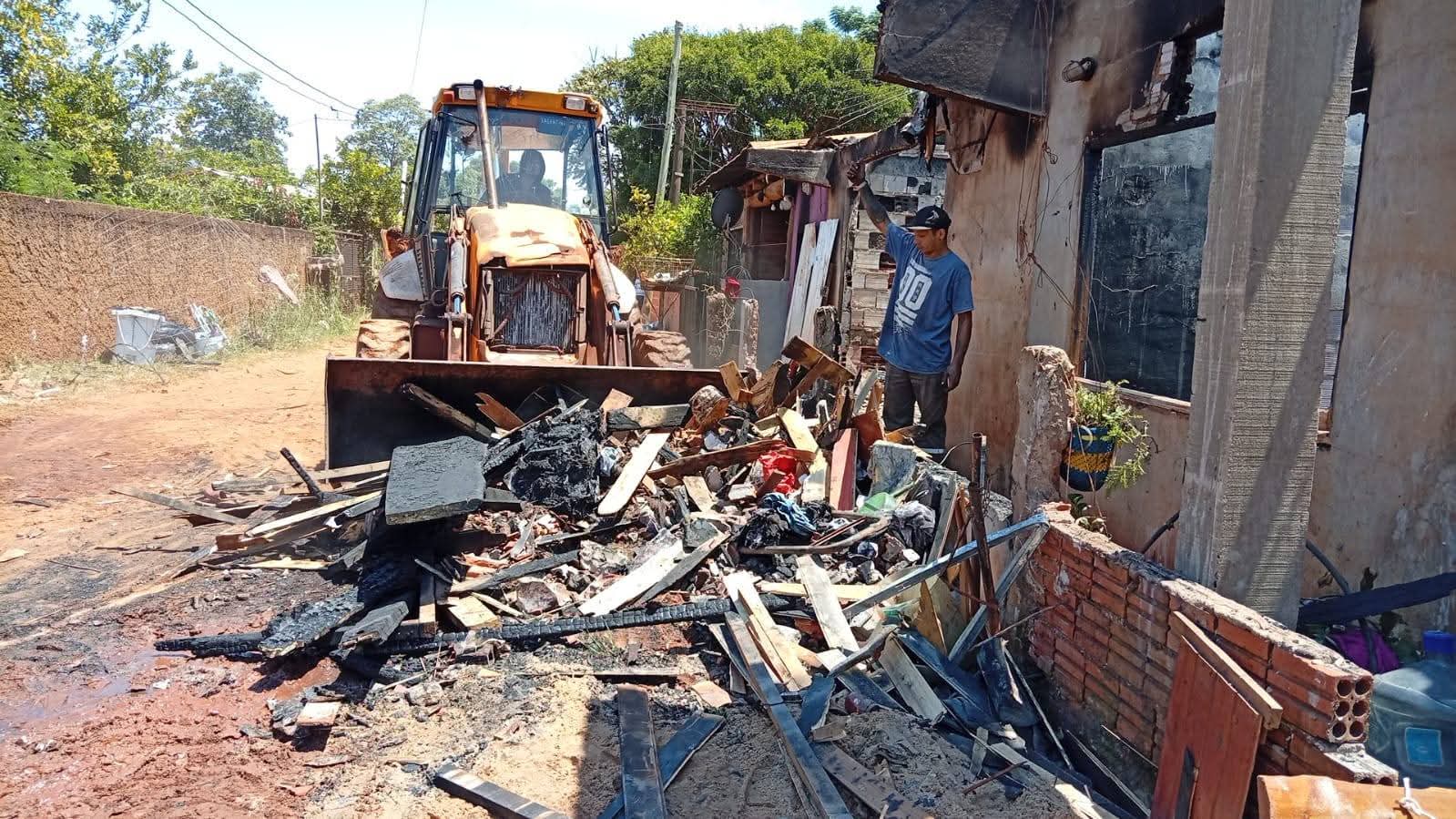 El siniestro en la Avda Ambar provocó la pérdida total de la vivienda familiar. Un equipo de agentes municipales realizó tras el incendio,la asistencia en el lugar realizando el trabajo de limpieza y quita de escombros.