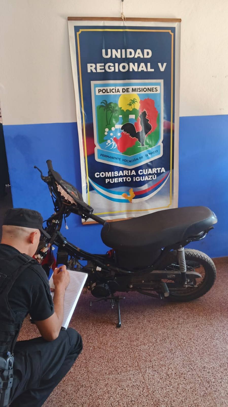 En consecuencia, con la orden procedente del Juzgado de Instruccion Tres Iguazú, en la mañana de hoy el personal policial irrumpió el domicilio del sospechoso ubicado sobre Calle Las Petunias de esta ciudad procediendo a la detención de Daniel R. Conocido como “Rata” tras requisar la vivienda la policía halló una motocicleta sin placa colocada marca IKA de 110 c.c. luego de las consultas de rigor se estableció que tenía pedido de secuestro activo por haber sido denunciado como sustraido en jurisdicción de la Comisaría seccional 4ta URV procediendo al secuestro del mismo.