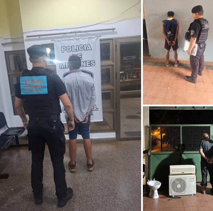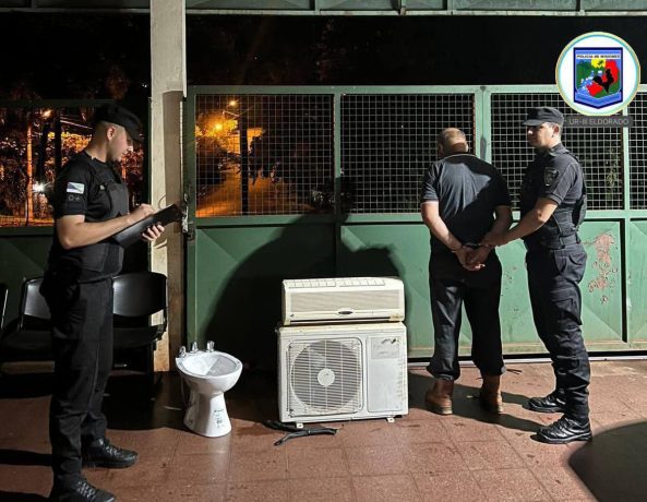 Minutos después, personal de la Seccional Primera de la Unidad Regional III intervino en el barrio Santo Domingo de Eldorado, sobre la calle Piray Guazú, donde sorprendieron a Oscar A. G. (58) en el interior de una vivienda. El implicado fue detenido en flagrancia cuando intentaba sustraer un lavatorio y un aire acondicionado tipo split, procediéndose al secuestro de ambos objetos.