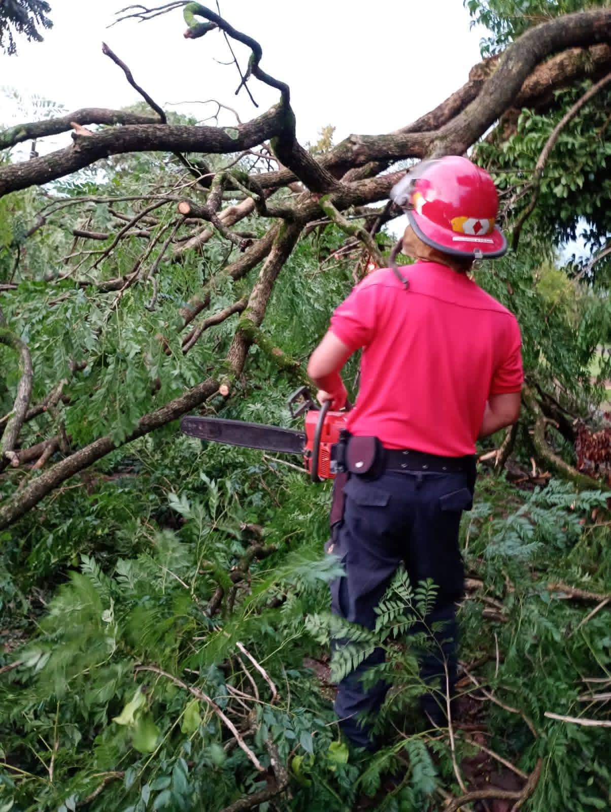 En Jardín América, personal de Bomberos trabajó en la remoción de árboles caídos sobre la Ruta Provincial 7 y 8, en Colonia Los Teales, y posteriormente en calle Brasil y en la intersección de avenida San Francisco de Padua y calle Güemes. Se realizaron cortes y limpieza de calzada para restablecer el tránsito. Se registraron daños en postes y cables del tendido eléctrico.
