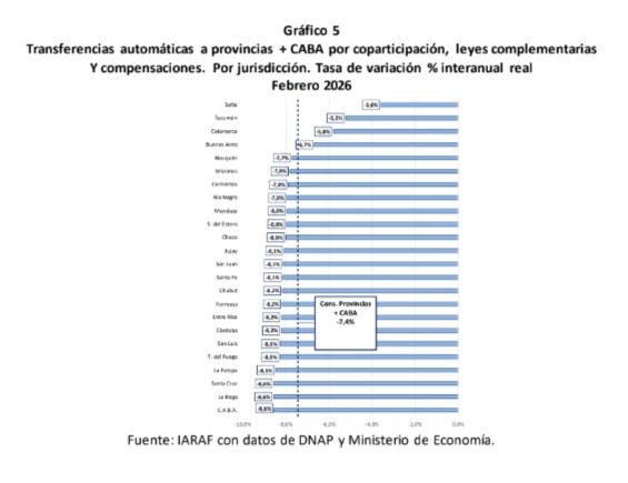 En el preámbulo de la apertura de sesiones ordinarias los datos fiscales arrojados por IARAF son alarmantes, según el instituto, el mes de febrero de 2026, el gobierno Nacional envió al consolidado de provincias más CABA $5.443.000 millones en concepto de Coparticipación, leyes especiales y compensaciones, frente a $4.424.000 millones enviados durante igual período del año anterior. Es decir que se observó una variación nominal del 23%.