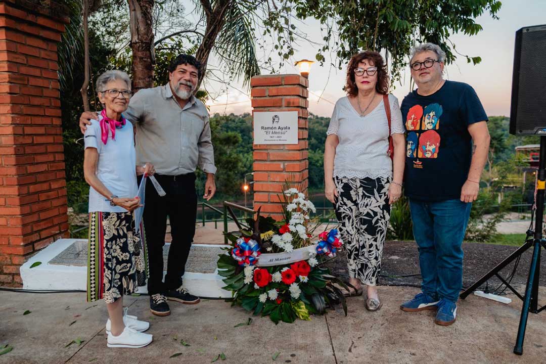 En ese marco, la directora de Patrimonio de la Municipalidad de Iguazú, María Esther Rolón, hizo entrega a Joselo Schuap de la designación -con fuerza de ordenanza- que otorga el nombre de Ramón Ayala al anfiteatro del Hito Tres Fronteras. La placa descubierta en Iguazú forma parte de una serie de homenajes que se vienen instalando en distintos puntos cardinales de la provincia. Todas fueron realizadas en los hornos de la Facultad de Arte de Oberá, con el acompañamiento de Ivonne Aquino y el equipo de la casa de altos estudios.