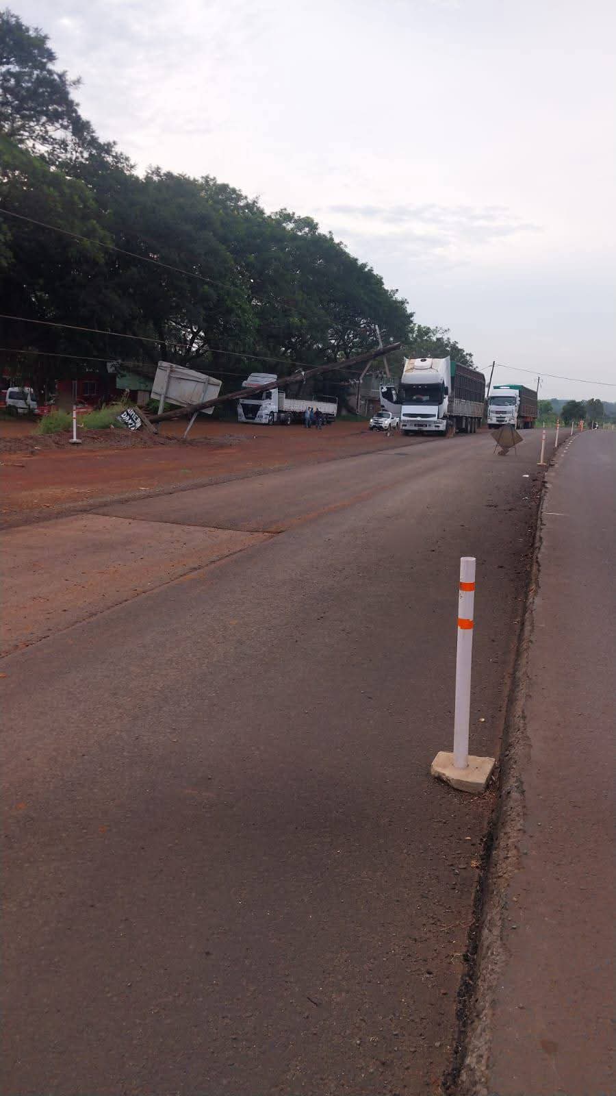El hecho se registró cerca de las 18:40 horas de este miércoles, sobre la Ruta Nacional 105, a la altura del kilómetro 34, en la localidad de San José, donde por causas que se investigan dos postes del tendido eléctrico cayeron sobre la calzada, alcanzando a dos camiones que transitaban por la zona.