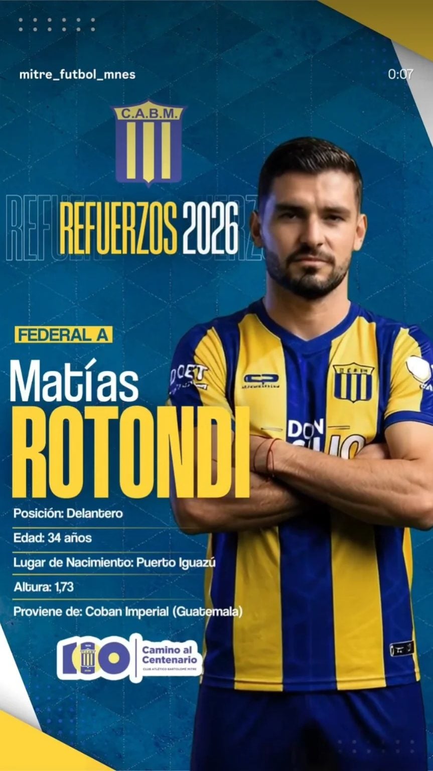 El Club Atlético Mitre de Posadas sumó un nuevo refuerzo para afrontar el Torneo Federal A. Se trata del delantero misionero Matías Rotondi, oriundo de Puerto Iguazú, quien comenzó a entrenar con el plantel auriazul y posteriormente acordó su llegada a la institución de Rocamora.
