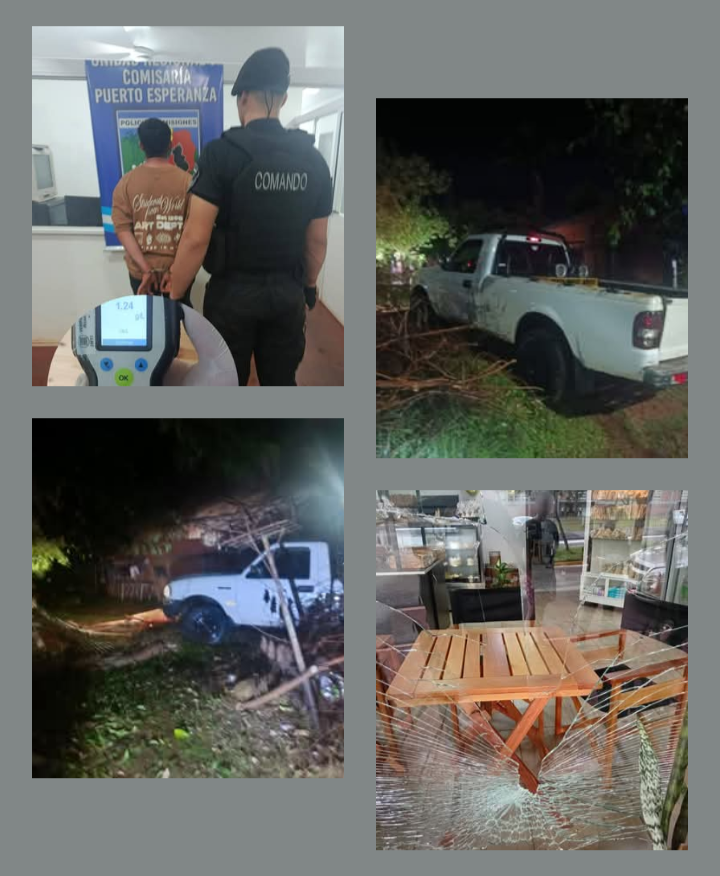 El hecho se inició alrededor de las 5:30 horas, en inmediaciones del Polideportivo del barrio San Cayetano, donde efectivos policiales realizaban tareas preventivas, momento en que el implicado impactó con su camioneta contra la vidriera de un local comercial.