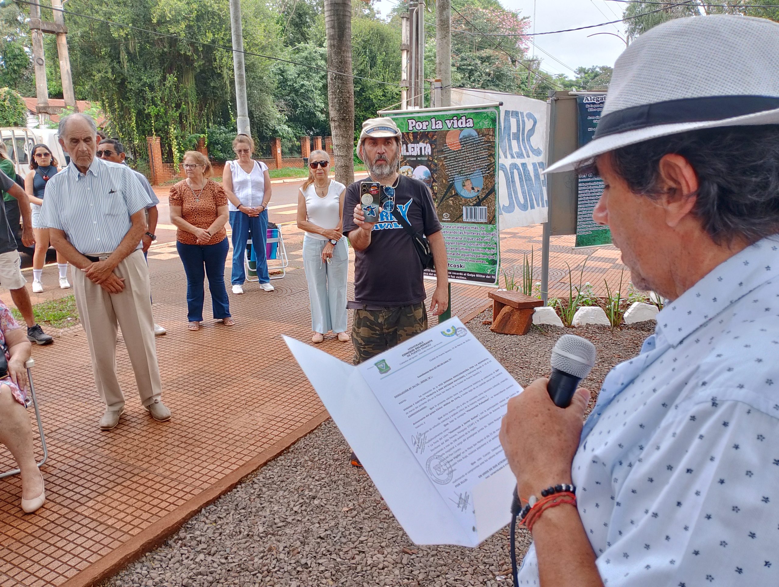Este martes por la mañana, en el marco del Día Nacional de la Memoria por la Verdad y la Justicia, Puerto Iguazú realizó un emotivo acto en la Plazoleta de la Identidad (Paseo de la Identidad) para recordar el golpe cívico-militar del 24 de marzo de 1976 y homenajear a las víctimas de la última dictadura, especialmente a los detenidos-desaparecidos y perseguidos de Misiones.