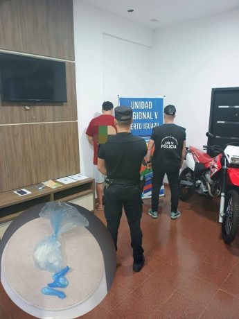 A horas 21.30 efectivos de la Comisaría seccional 1ra interceptaron a un joven a bordo de una motocicleta marca Honda modelo XR tornado, siendo identificado como Kevin R. De 26 años quien transportaba envoltorios con cocaína presumiblemente listas para su distribución. Las pruebas de campo realizadas sobre las dosis por la Dirección de Drogas Peligrosas confirmaron la naturaleza de las sustancias.