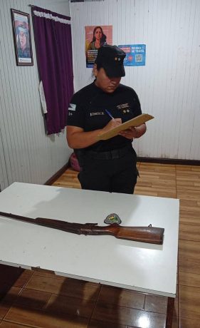 La víctima, una mujer de 54 años manifestó que en horas de la madrugada su pareja inicio un discusión donde la amenazó de muerte además la agredió físicamente provocándole varias lesiones en distintas partes del cuerpo temiendo la misma por su integridad física y la de su grupo familiar.La mujer fue examinada por el médico policial quien constató las lesiones en la víctima. El aprehendido fue arrestado en la mañana de hoy con el apoyo de otras dependencias policiales en su poder se secuestró una escopeta calibre 16 permaneciendo el hombre alojado en sede policial a disposición de la justicia en averiguación del hecho.