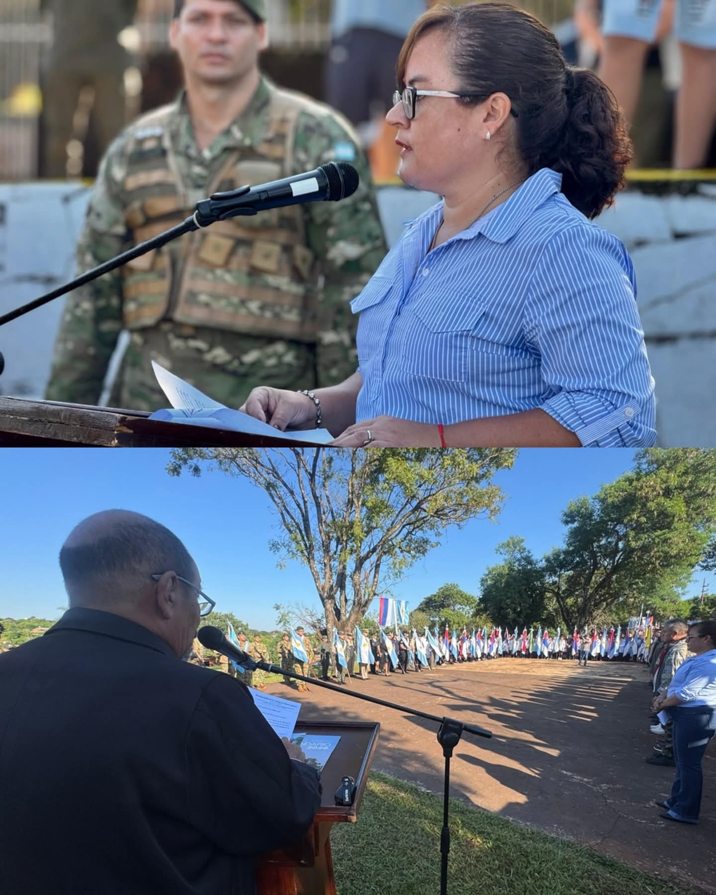 En representación del Municipio, hizo uso de la palabra la directora de Asuntos Guaraníes, Vanesa Caballero, quien agradeció la presencia de la secretaria de Gobierno Marcela González, concejales, veteranos, referentes educativos, fuerzas armadas y de seguridad, autoridades municipales y vecinos.“En 1982, muchos jóvenes argentinos dejaron sus hogares, sus familias y sueños por defender la soberanía de nuestras islas. Con coraje y amor por el país enfrentaron momentos muy difíciles, demostrando un profundo compromiso con la nación”, señaló Caballero.