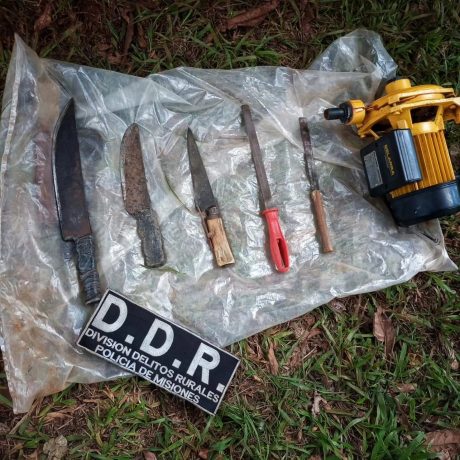 Entre los objetos secuestrados también se encontraban una bomba de agua centrífuga de dudosa procedencia, tres cuchillos de fabricación casera y dos linternas a pilas, elementos comúnmente vinculados a la caza furtiva y posibles hechos de abigeato.
