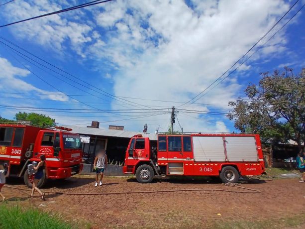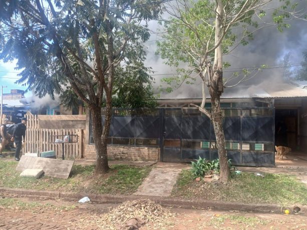 Un incendio de gran magnitud se registró hoy a las 13:10 en el barrio 90 Viviendas, manzana 408 de Garupá, donde una comisión policial acudió tras un requerimiento del 911 y constató el foco ígneo en la casa 26.