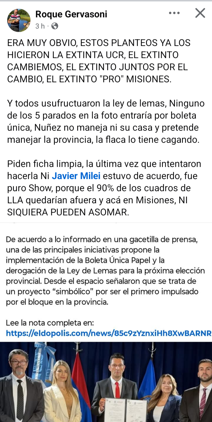 “ERA MUY OBVIO, ESTOS PLANTEOS YA LOS HICIERON LA EXTINTA UCR, EL EXTINTO CAMBIEMOS, EL EXTINTO JUNTOS POR EL CAMBIO, EL EXTINTO ‘PRO’ MISIONES.