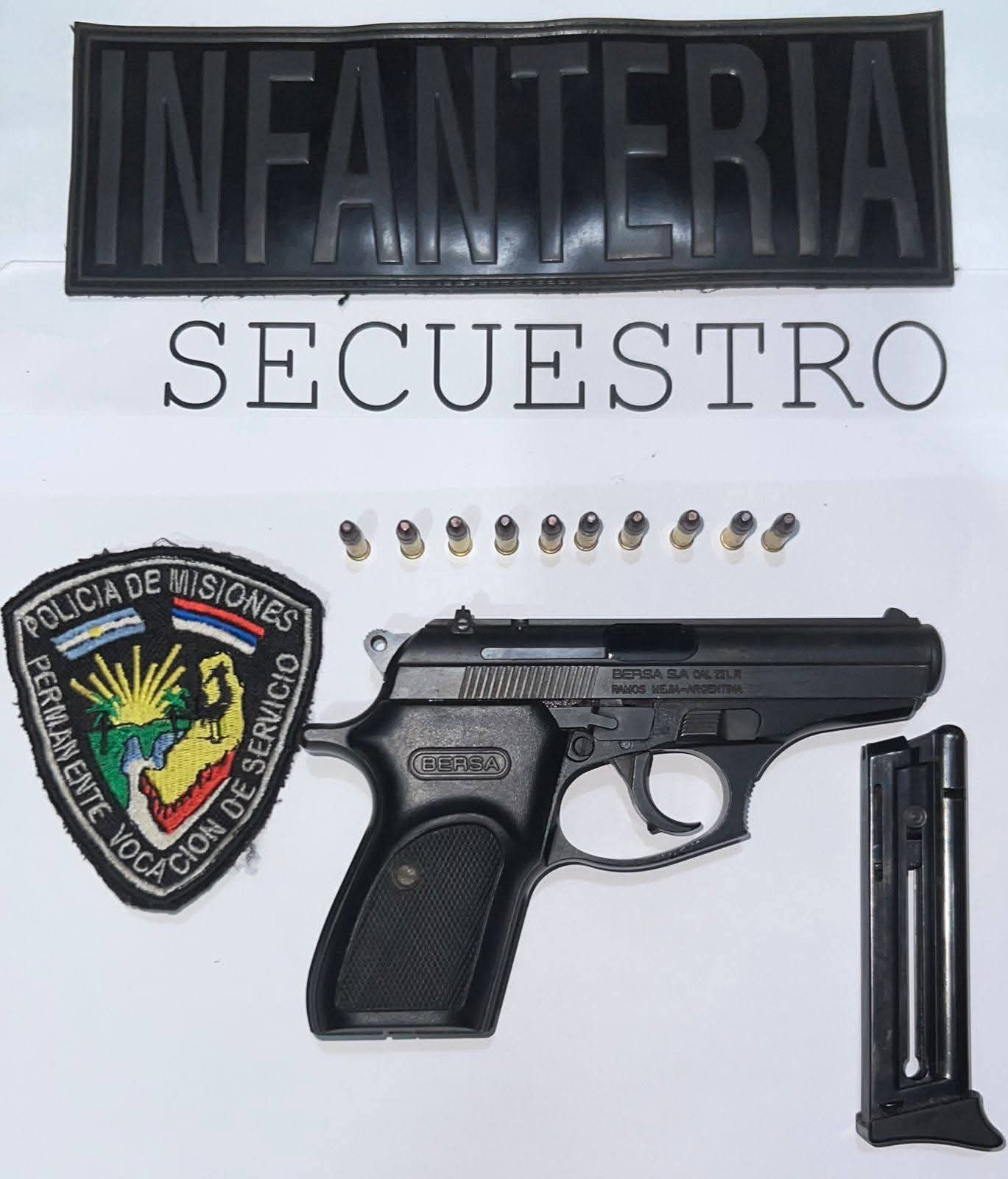 Durante la intervención, se constató que Martín R. portaba un arma de fuego calibre 22, marca Thunder, con un cartucho en la recámara y varias municiones en el cargador. Los policías procedieron al desarme inmediato y al secuestro del elemento.