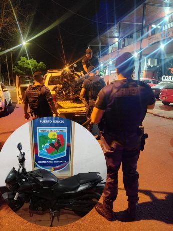 El primer procedimiento se registró a las 4:40 horas en la calle J.J. Valle. Una patrulla que realizaba recorrida en modalidad de infantes detectó una motocicleta marca Bajaj, color negro, abandonada en la vía pública. El rodado fue inmediatamente secuestrado y trasladado a la sede policial para determinar su procedencia.