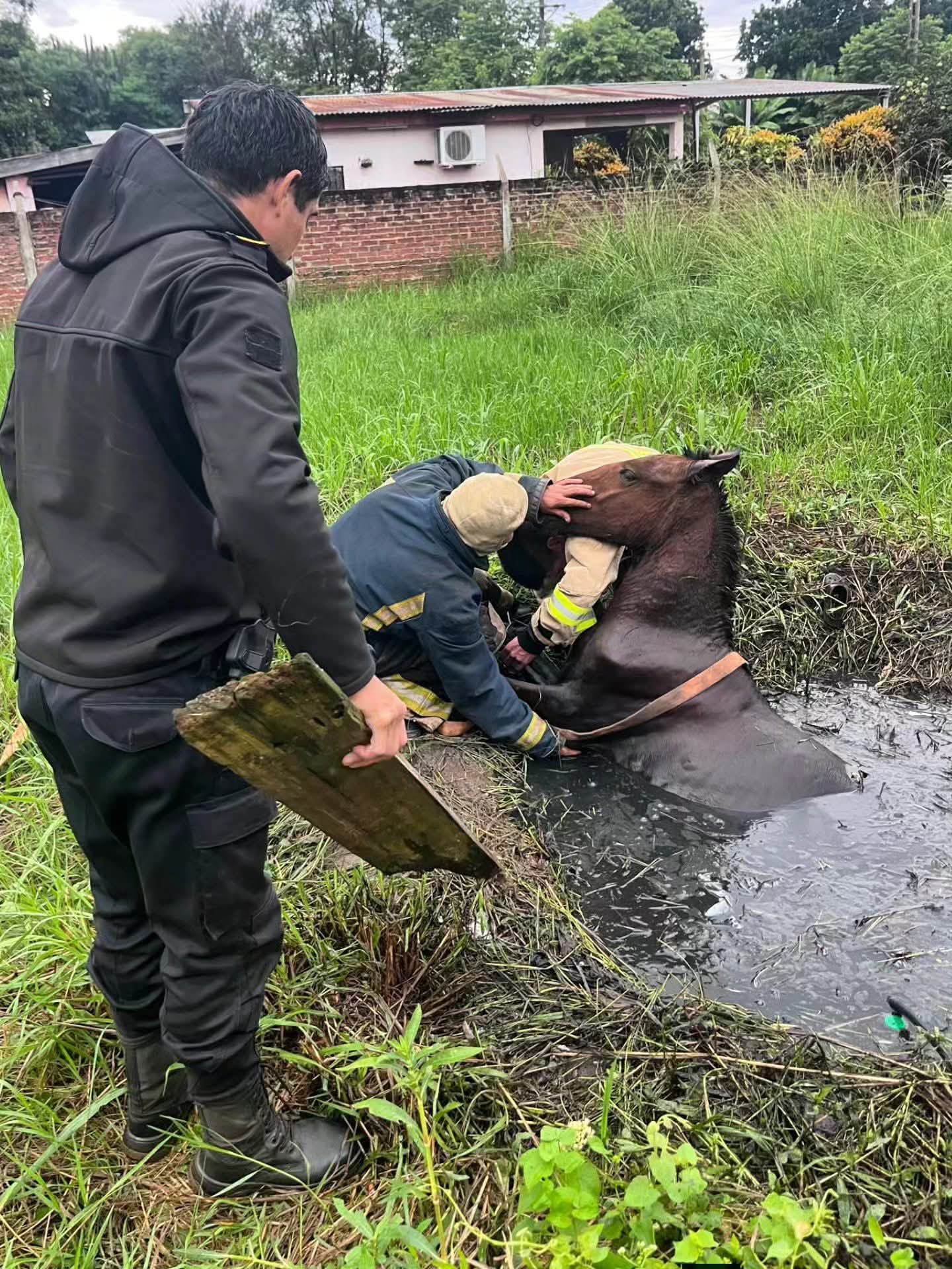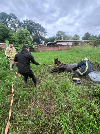El procedimiento se realizó este 12 de abril, alrededor de las 10 horas, en la intersección de las calles Liniers y Paraguay, en la localidad de Candelaria, donde residentes alertaron que un equino había caído dentro de un pozo de agua y no podían sacarlo por sus propios medios.Una vez en el lugar, efectivos de la Comisaría local, en conjunto con Bomberos Voluntarios de Candelaria, llevaron adelante las maniobras necesarias para rescatar al animal, logrando finalmente extraerlo, y entregado a su propietario.