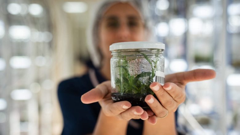 La visita comenzó en el laboratorio de cultivos in vitro, donde se interiorizó sobre el trabajo en la cámara de crecimiento de distintas especies, entre ellas banano, ornamentales, flores, orquídeas y árboles nativos. Luego, recorrió la sala de siembra, donde observó las tareas que se realizan en cabinas de flujo y dialogó con el equipo técnico sobre los procesos productivos.