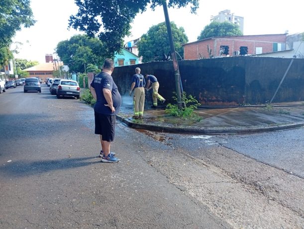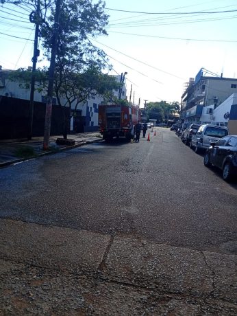 Ante quejas de vecinos y especialmente de personas mayores con movilidad reducida que se atienden en la clínica cercana, personal de los Bomberos Voluntarios de Iguazú debió intervenir de para mitigar un foco de olores nauseabundos.