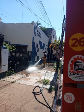 Ante reiteradas quejas de vecinos, especialmente de personas mayores con movilidad reducida que concurren a una clínica cercana, personal de Bomberos Voluntarios intervino en una esquina de Puerto Iguazú para realizar tareas de limpieza con lavado a presión y mejorar las condiciones de salubridad del lugar.