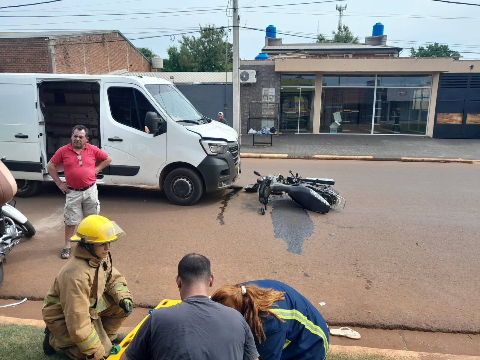 Según informaron fuentes oficiales, alrededor de las 14:00 horas, la guardia de Bomberos Voluntarios de Iguazú recibió un llamado de emergencia por el siniestro vial. Una dotación se dirigió de inmediato al lugar y constató la colisión entre una motocicleta de 110 cc y una camioneta tipo furgón marca Renault.
