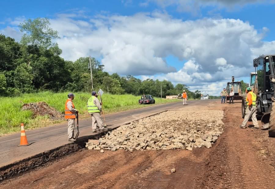 Sobre la traza de la ruta, en inmediaciones de la zona urbana de Bonpland, en el sector cercano al puente sobre el arroyo Tigre, Vialidad repara tramos dañados que presentan distintas características. Las tareas comprenden, en algunos casos, la remoción de la capa de rodamiento mediante fresado y el trabajo de reconstrucción de la base estructural, recuperando condiciones correctas de suelo, para luego asfaltar nuevamente. Este tipo de tareas proporcionan mayor durabilidad y resistencia a la capa asfáltica.
