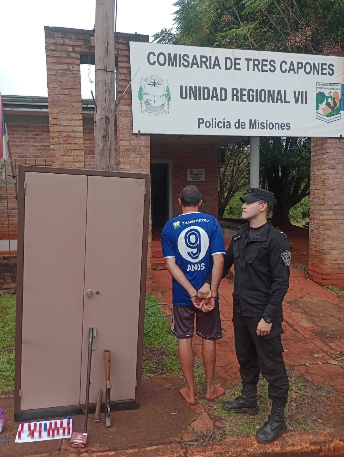 A.O.E. quedó detenido y alojado en la comisaría jurisdiccional, en calidad de procesado por los delitos de hurto y tenencia ilegítima de arma de fuego.