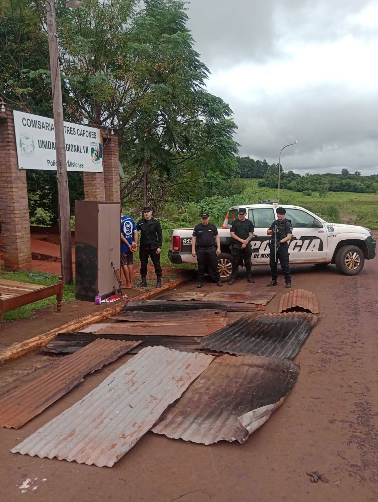 Durante el registro, los efectivos secuestraron un armario metálico, una cama de dos plazas y 11 chapas de cinc de diferentes medidas. Los elementos fueron reconocidos de inmediato por los damnificados como de su propiedad.