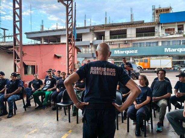 Con el objetivo de mejorar la respuesta ante emergencias, el área de Socorrismo de Bomberos Voluntarios de Puerto Iguazú realizó una nueva jornada de capacitación interinstitucional que reunió a bomberos, fuerzas de seguridad y representantes de la sociedad civil.