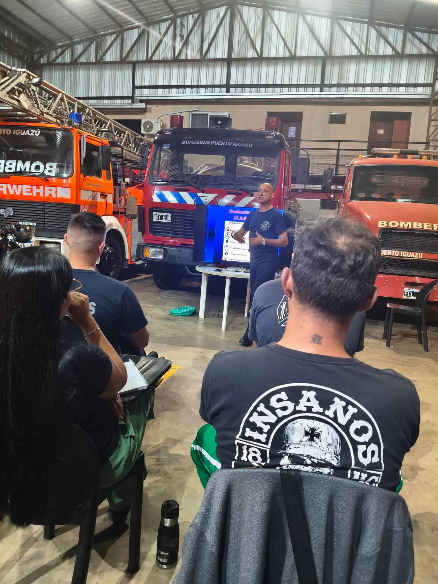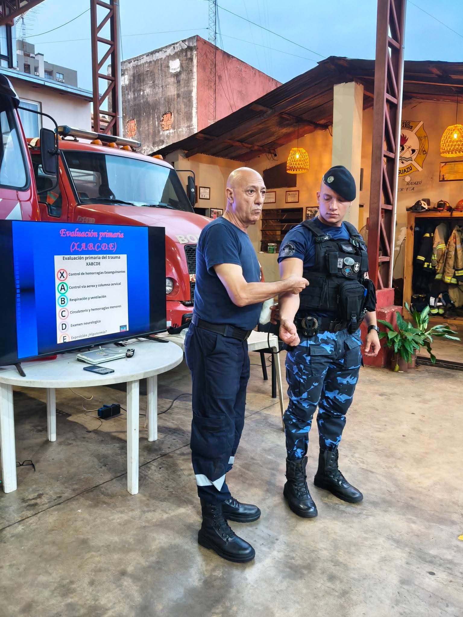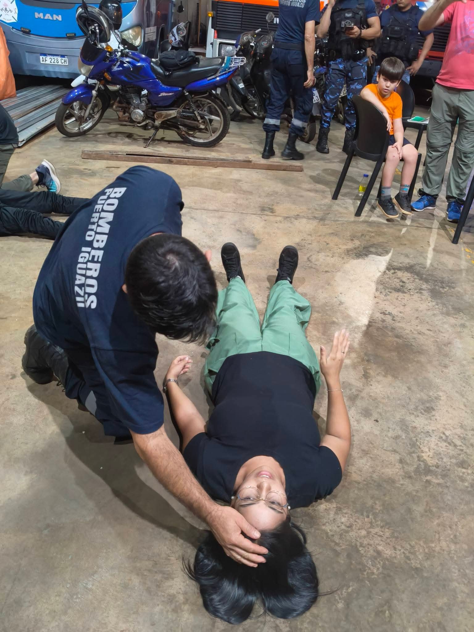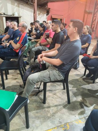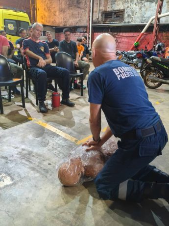 La actividad comenzó a las 17:30 horas de este viernes y estuvo a cargo del Sargento Víctor Vallejos, quien dictó los módulos 1 y 2 referidos a Seguridad en la escena y Evaluación primaria de la/s víctimas, contenidos esenciales para una correcta intervención inicial en siniestros y accidentes.Participaron 18 integrantes del Cuerpo Activo de Bomberos Voluntarios de Puerto Iguazú, a quienes se sumaron 4 efectivos de Prefectura Naval Argentina, 2 policías de la Sección Infantería de la Policía de la Provincia de Misiones y el encargado de primeros auxilios del motoclub Insanos, en representación del sector civil.
