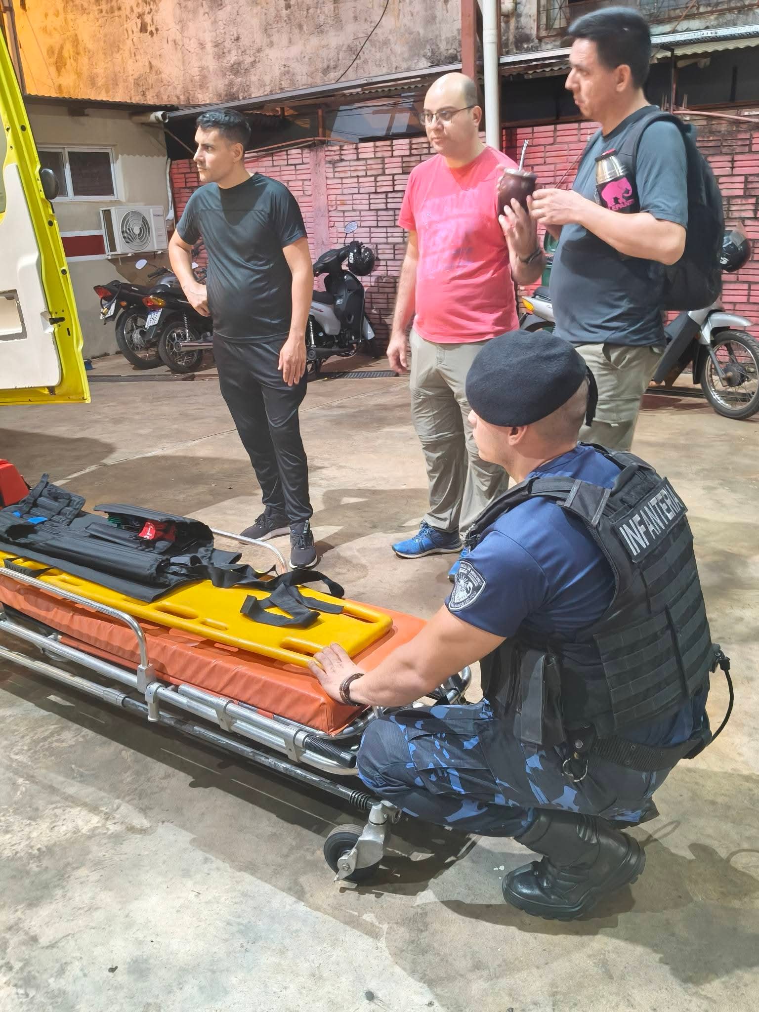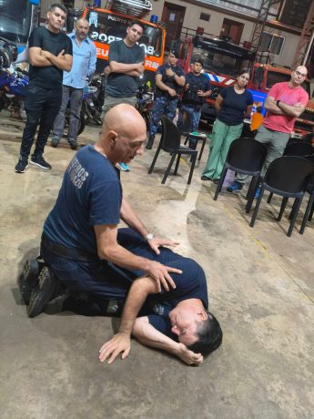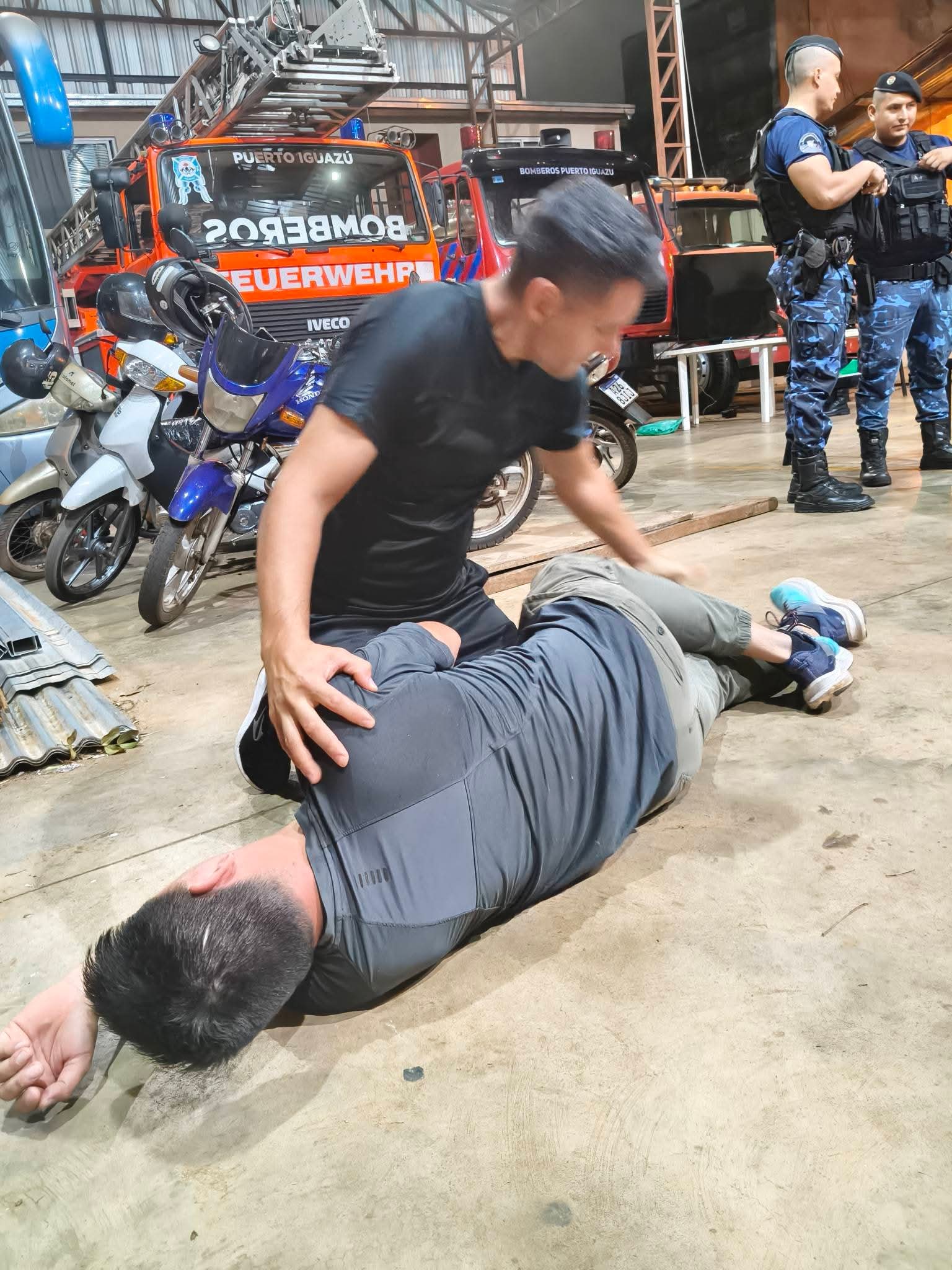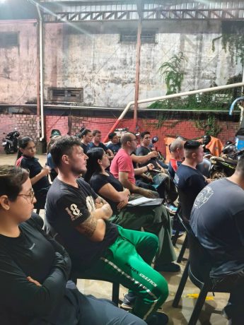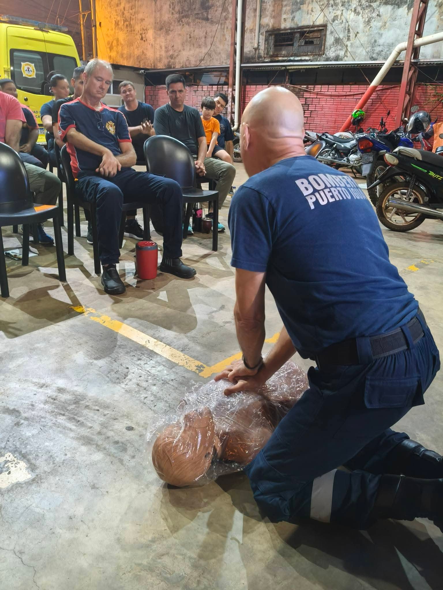 La actividad comenzó a las 17:30 horas de este viernes y estuvo a cargo del Sargento Víctor Vallejos, quien dictó los módulos 1 y 2 referidos a Seguridad en la escena y Evaluación primaria de la/s víctimas, contenidos esenciales para una correcta intervención inicial en siniestros y accidentes.Participaron 18 integrantes del Cuerpo Activo de Bomberos Voluntarios de Puerto Iguazú, a quienes se sumaron 4 efectivos de Prefectura Naval Argentina, 2 policías de la Sección Infantería de la Policía de la Provincia de Misiones y el encargado de primeros auxilios del motoclub Insanos, en representación del sector civil.