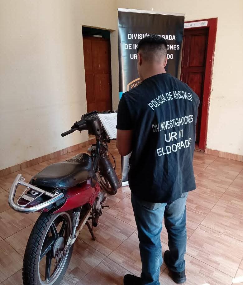 Finalmente, alrededor de las 11 horas, en el barrio Sarmiento (Km 6), efectivos de la División Investigaciones detectaron a un hombre que intentaba poner en marcha una motocicleta sin chapa patente, sin espejos y con el escape modificado. Al advertir la presencia policial, el sospechoso se dio a la fuga, abandonando el rodado. Al ser verificado, se constató que presentaba el número de cuadro y motor limados, por lo que fue secuestrado.