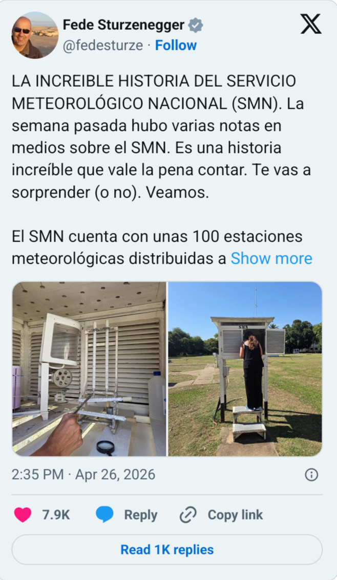 El Ministro de Desregulación y Transformación del Estado, Federico Sturzenegger, sacudió las redes sociales al exponer en su cuenta oficial de X lo que describe como una “historia increíble” de ineficiencia tecnológica en el Servicio Meteorológico Nacional (SMN).