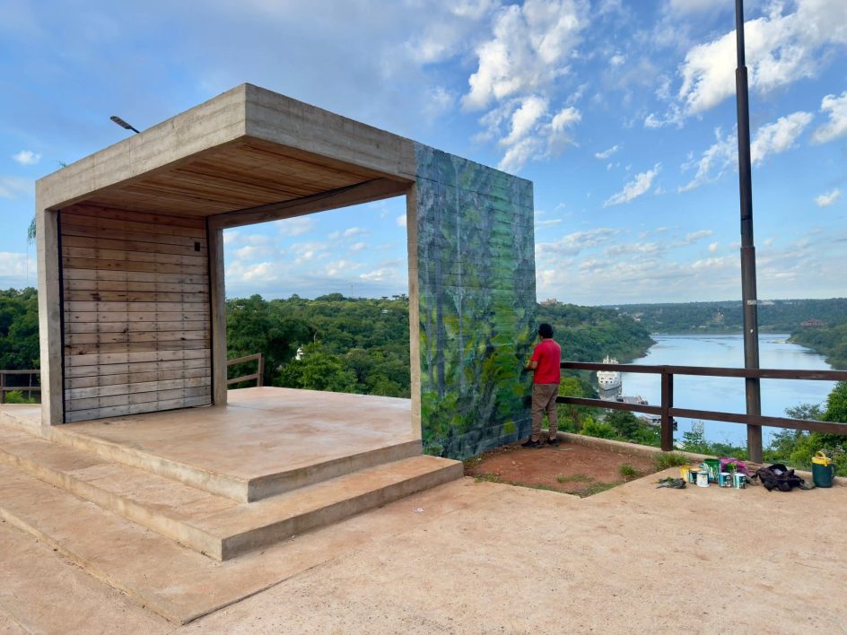 La ciudad de suma arte urbano que transforma el lugar. En el Mirador de la Costanera, Mario Gaviro Ocampo trabaja en una intervención artística que revaloriza uno de los espacios públicos más representativos de Iguazú. Una acción que suma identidad, belleza y expresión cultural, pensada para quienes transitan, visitan y disfrutan la ciudad.