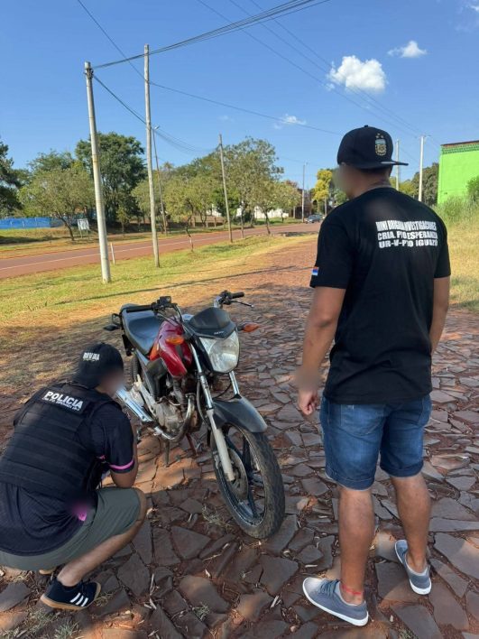 Efectivos de la comisaría jurisdiccional con apoyo de personal encubierto de la División Investigaciones recorrían preventivamente calle internas del barrio Piedras Preciosas de esa localidad, circunstancias en que hallaron abandonada una motocicleta marca Honda Modelo Cg 150 Titan.